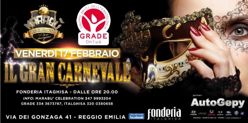 Appuntamento venerdì 17 febbraio dalle ore 20.00, presso la Fonderia Italghisa di Reggio Emilia, con Il Grande Carnevale, evento culturale ideato e realizzato da Marabù Celebration con l’Associazione Culturale Sandro Gasparini, il cui ricavato verrà devoluto a GRADE per il progetto Pet Puzzle.