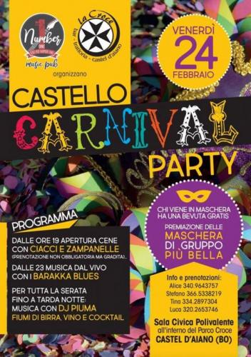 Venerdì 24 febbraio Castello Carnival Pary alla Sala Civica Polivalente di Castel d'Aiano dalle ore 19.