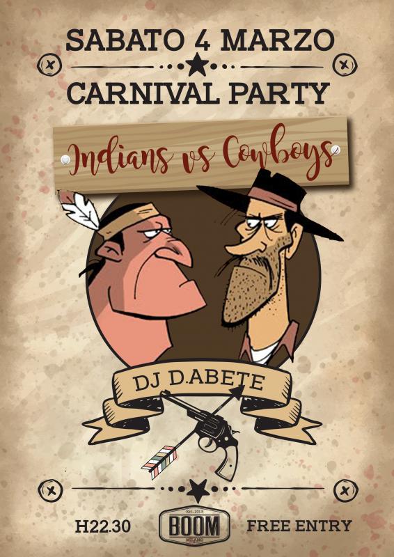 Sabato 4 marzo arriva il Carnival Party Indians vs Cowboys; indossate i i vostri copricapi piumati, lucidate cinturoni e speroni,dipingetevi il viso per la battaglia.
