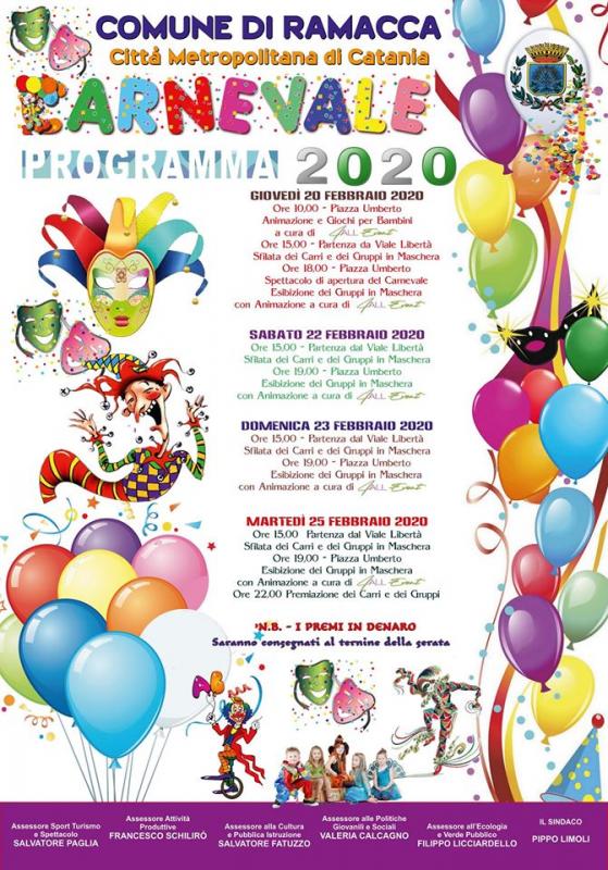 Il Comune di Ramacca invita a partericape agli eventi di carnevale che saranno a base di musica, intrattenimento e animazione, sfilate dei carri allegorici e dei gruppi in maschera.