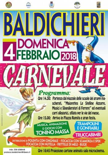 Domenica 4 febbraio 2018 si svolge il Carnevale a Baldichieri d'Asti.