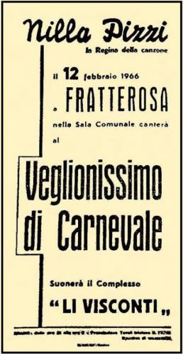 Giovedì 8 febbraio, presso la Sala Vittoria di Fratte Rosa la Pro Loco di Fratte Rosa e Torre San Marco organizza: serata danzante, in maschera, con l'orchestra "Moris & gli America", rievocando nostalgicamente i favolosi anni '60!