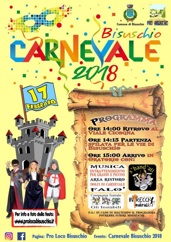 Sabato 17 febbraio 2018 si festeggia il Carnevale a Bisuschio.