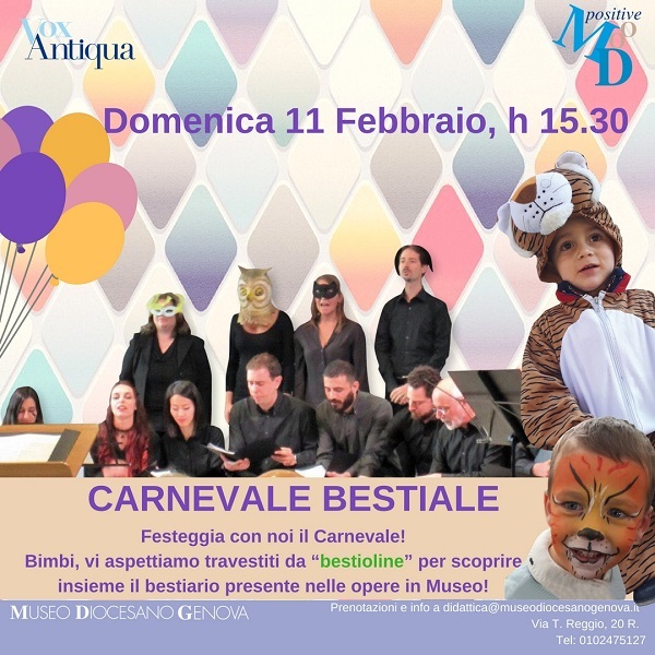 Domenica 11 Febbraio alle ore 15,30 il Museo Diocesano organizza per i suoi piccoli “visitatori” un Carnevale bestiale tra arte e musica. Tutti i bambini sono invitati a festeggiare con noi!