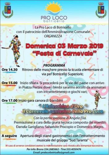 Domenica 3 marzo 2019 si fa festa a Botricello (CZ) con il Carnevale 2019.