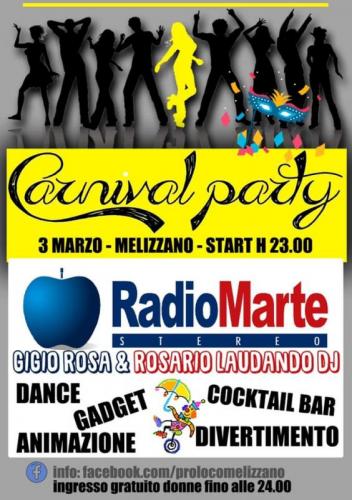 E a seguire...CARNIVAL PARTY! Dance, gadget, cocktail bar insieme ai mitici DJ di RADIOMARTE...start ore 23:00.