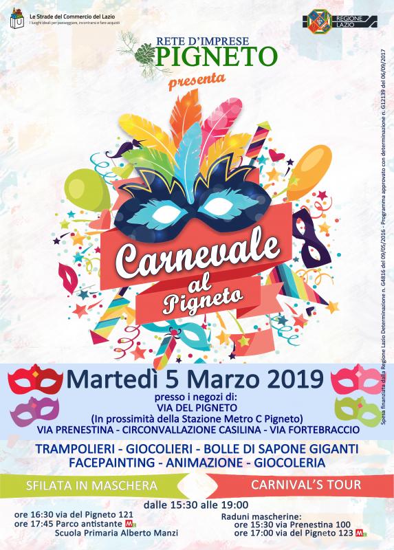 Punto di partenza del Carnival’s tour alle ore 16:00 in via Prenestina 100 di fronte Sinergy per poi procedere attraverso via di Circonvallazione Casilina e via di Fortebraccio tra sorprese, giochi e trucchi sparsi tra i negozi dell’area. A seguire la mini sfilata in corrispondenza di Via del Pigneto in prossimità della Stazione Metro C. I bambini proseguiranno poi fino al parco ludico antistante la Scuola Primaria Alberto Manzi, dove alle ore 18:00 si svolgerà la minisfilata di chiusura del Carnevale 2019.