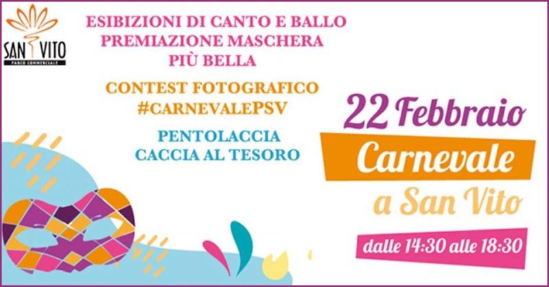 Sabato 22 Febbraio, dalle 14:30 alle 18:30, ti aspettiamo per la festa di Carnevale al Parco Commerciale San Vito dedicata a tutti i bambini!