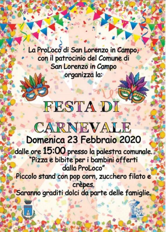 Festa di Carnevale Domenica 23 Febbraio 2020 presso la palestra comunale di San Lorenzo in Campo