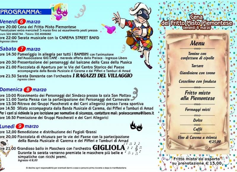 ll Carnevale di Carema in Provincia di Torino si svolgera dal 6 al 8 Marzo 2020