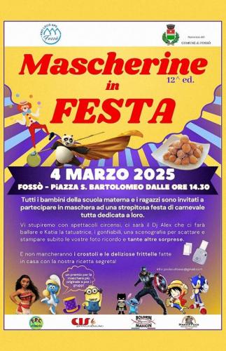 Torna per la 12a edizione “Mascherine in Festa” la festa in maschera del martedì grasso (04 Marzo 2025) che la Proloco di Fossò ogni anno vuole dedicare a tutti i bambini/e e ragazzi/e