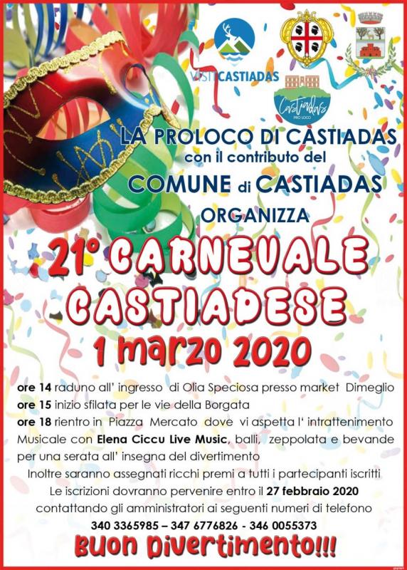 Domenica 01 Marzo, la Proloco Castiadas, con il contributo del Comune di Castiadas organizza il Carnevale Castiadese.