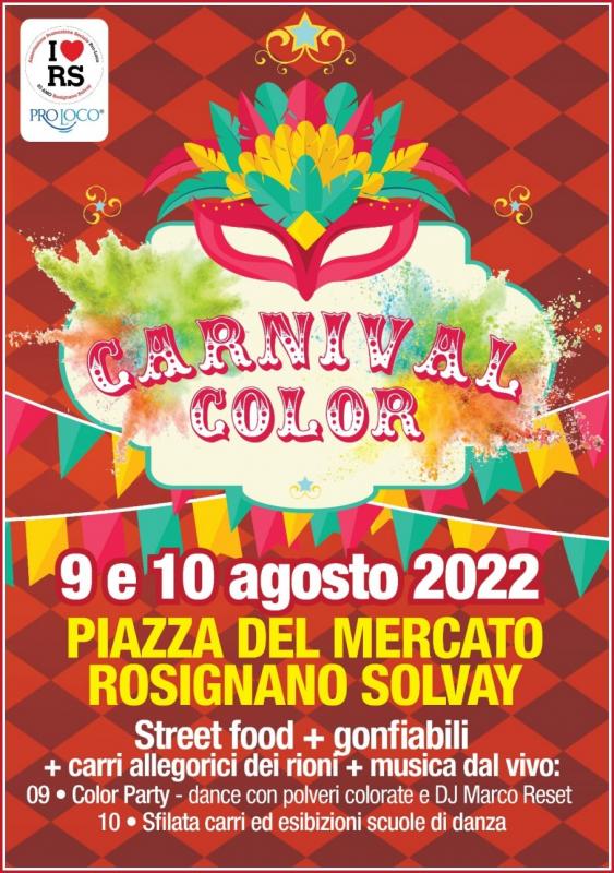 In Piazza del Mercato a Rosignano Solvay, frazione del Comune di Rosignano Marittimo in provincia di Livorno si svolge nei giorni 09 e 10 Agosto 2022 il Carnival Color.