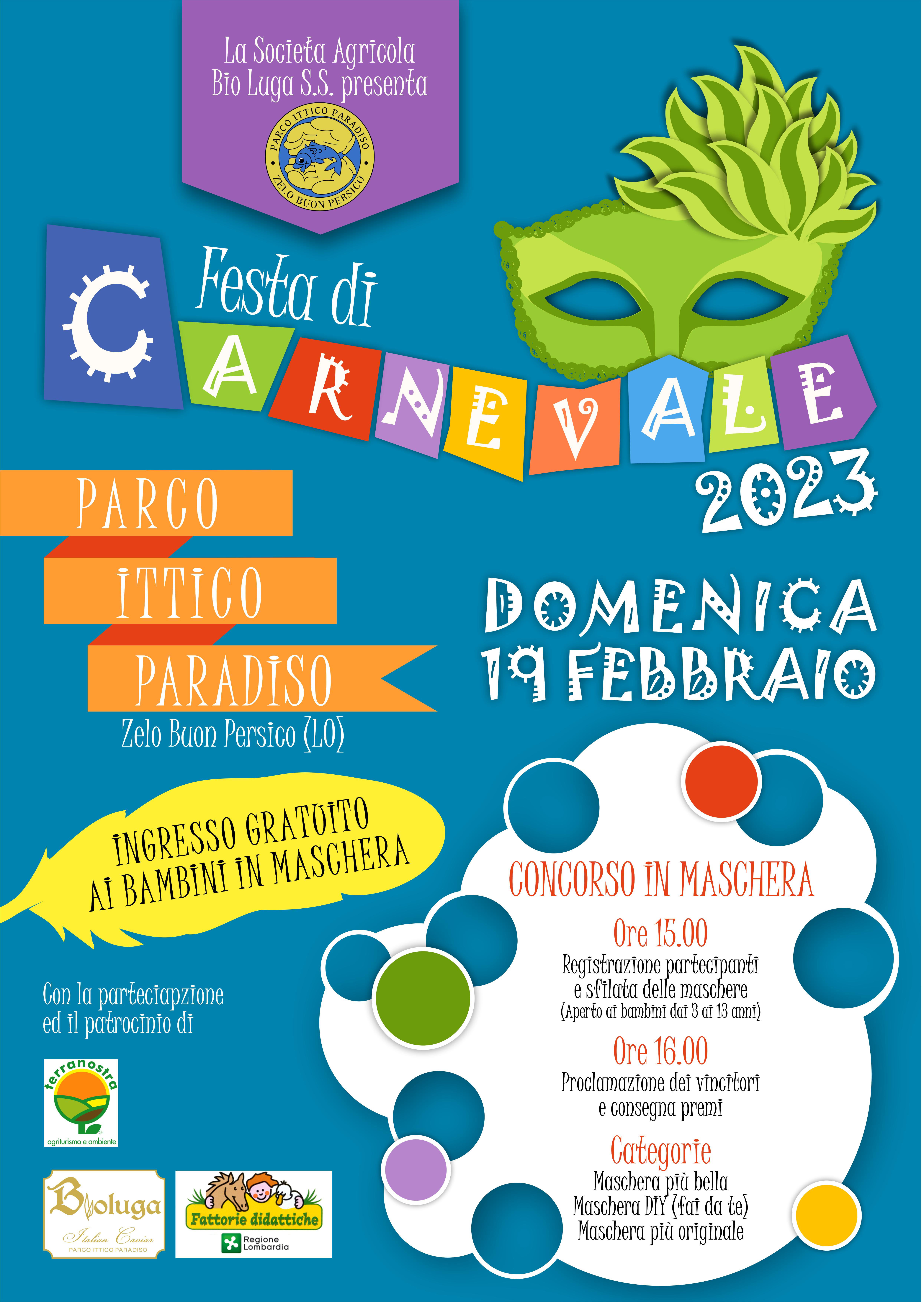 Domenica 19 Febbraio tutti in maschera al Parco Ittico Paradiso.Ingresso gratuito ai bambini in maschera (dai 3 ai 13 anni).
