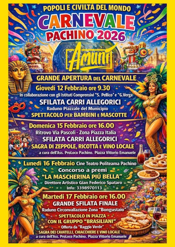 Vi aspettiamo in Piazza Vittorio Emanuele a Pachino per festeggiare insieme il Carnevale più goloso dell'anno!!