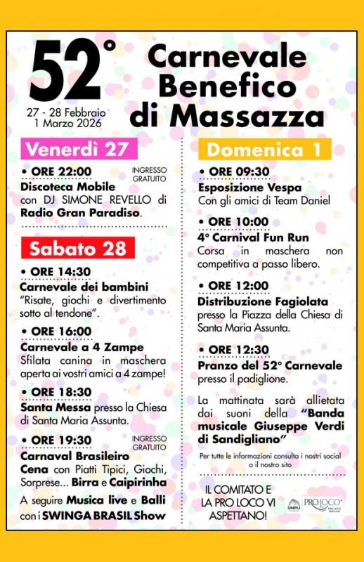 Ecco a voi il programma del 52° CARNEVALE BENEFICO DI MASSAZZA!
