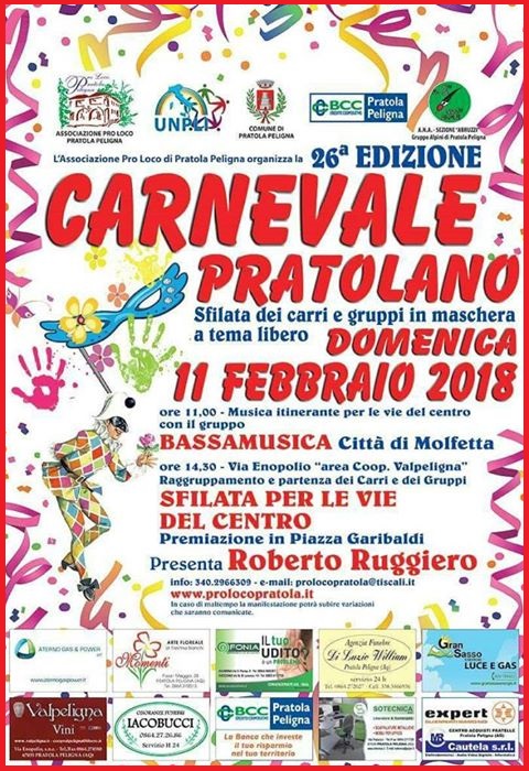 Domenica 11 febbraio torna il tradizionale appuntamento con il Carnevale Pratolano organizzato dalla Pro Loco.
