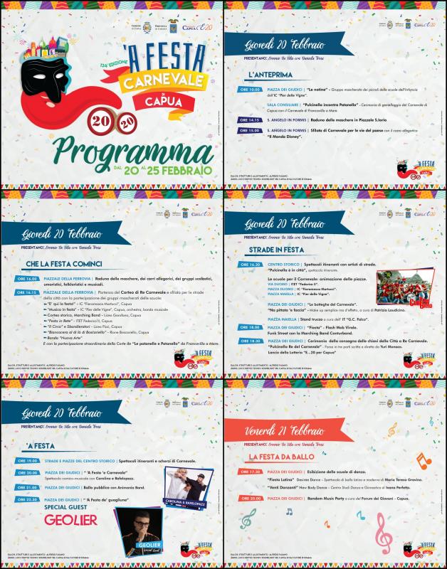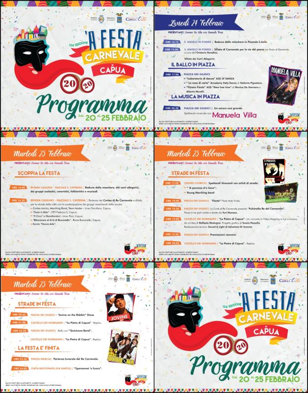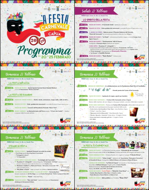 L’Edizione del Carnevale di Capua sarà spettacolare grazie ad un calendario e ad un programma ricco di eventi. Come di consueto, sono previste le sfilate in maschera per le vie più importanti della città accompagnate dai gruppi musicali e da tanta buona musica ..