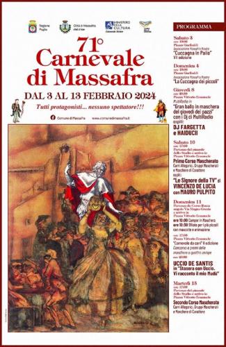 Il Carnevale di Massafra raffigura la manifestazione culturale più importante dell'anno nonché l'evento turistico più rappresentativo della Città nel territorio, sia provinciale sia Regionale, richiamando numerosi turisti e spettatori.