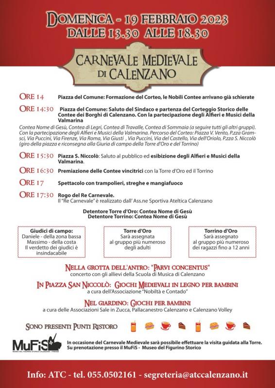 Domenica 19 Febbraio 2023 a Calenzano torna il Carnevale Medievale, promosso dal Comune e dall’Associazione Turistica.