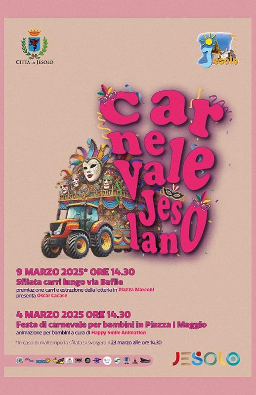 Domenica 9 marzo 2025, Jesolo si anima con la tradizionale sfilata di carri allegorici, un appuntamento imperdibile del Carnevale Jesolano.