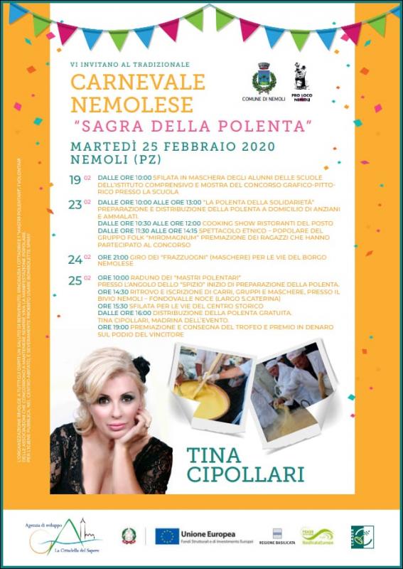 Da Mercoledì 19 a Martedì Grasso 25 Febbraio 2020 a Nemoli (PZ) si svolgono gli eventi del Carnevale Nemolese 2020 e nel giorno di Martedì Grasso si gusteranno i piatti della tradizionale Sagra della Polenta.