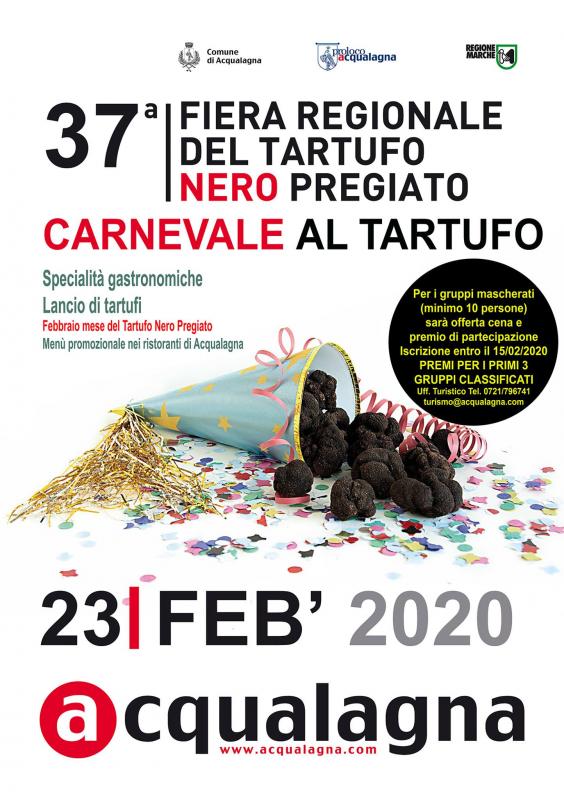 La 37^ Fiera Regionale del Tartufo Nero Pregiato e Carnevale al Tartufo ad Acqualagna (PU) si svolge domenica 23 febbraio 2020.
