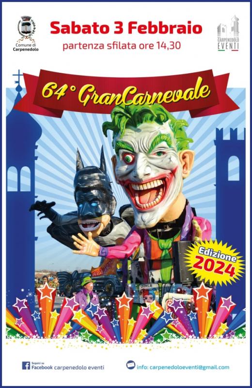 Sabato 03 Febbraio 2024 avrà luogo il 64° Gran Carnevale Carpenedolese.