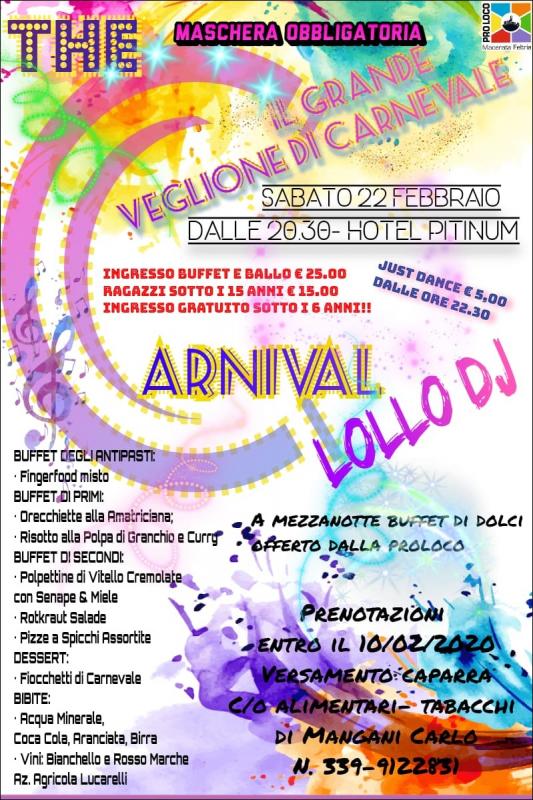 A Macerata Feltria in provincia di Pesaro e Urbino si svolge nella giornata di Sabato 22 Febbraio 2020 il Grande Veglione di Carnevale.