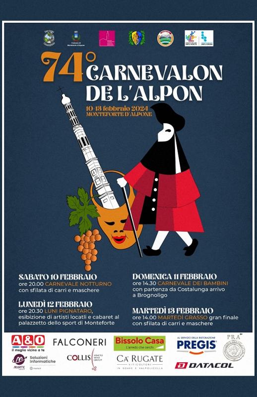 Carnevale di Monteforte d'Alpone (Verona), terra del vino Soave Classico, dà appuntamento dal 10 al 13 Febbraio 2024 al 74° Carnevalon de l'Alpon, uno dei più importanti Carnevali nella Provincia di Verona e del Veneto.