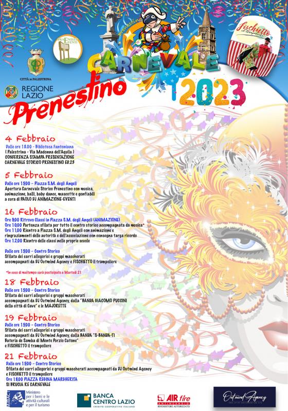 Salvate queste date nei vostri calendari e preparatevi a vivere l'emozione della cinquantesima edizione del Carnevale Prenestino! Non perdete l'occasione di essere parte di questa straordinaria celebrazione di tradizione, allegria e festa.