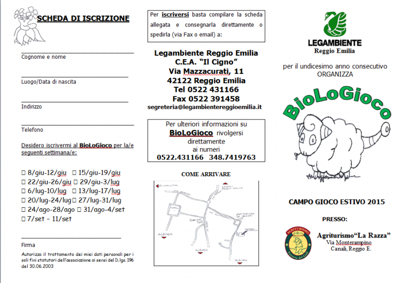 Biologioco si caratterizza per i laboratori didattici legata all’ambiente e per il contatto con piccoli animali (conigli, galline, pecore…).