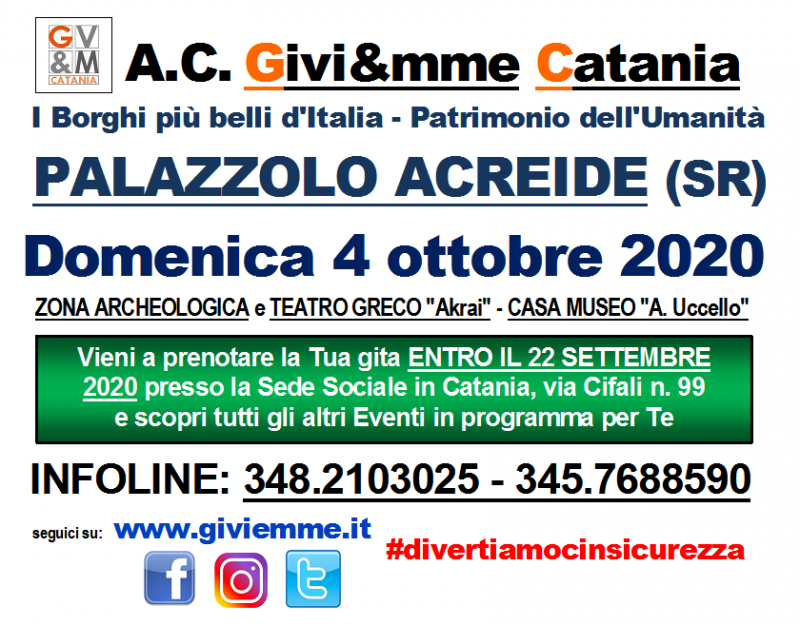 L'A.C. Givi&mme Catania organizza per Domenica 04 Ottobre 2020 una gita a Palazzolo Acreide (SR)