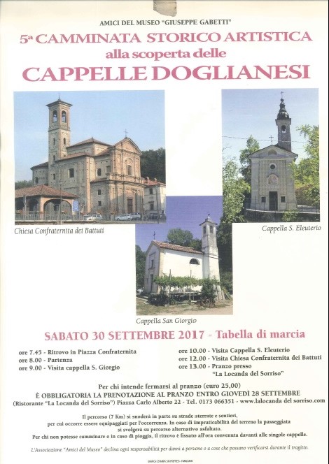 Sabato 30 Settembre si svolgerà la 5^ camminata storico artistica alla scoperta delle cappelle doglianesi.
