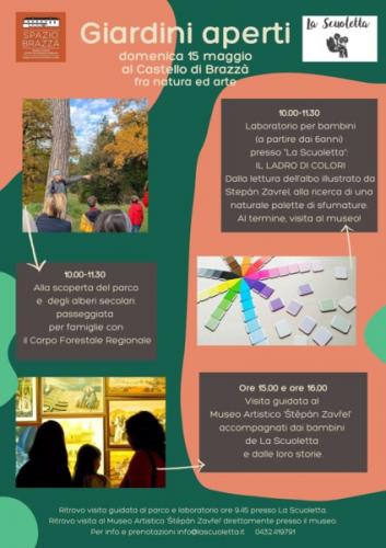 In questo contesto i Musei di Spazio Brazzà in collaborazione con La Scuoletta Montessori di Brazzacco, propongono passeggiate nel parco per le famiglie con il Corpo Forestale Regionale, laboratori e visite guidate al Museo Artistico Štěpán Zavřel.