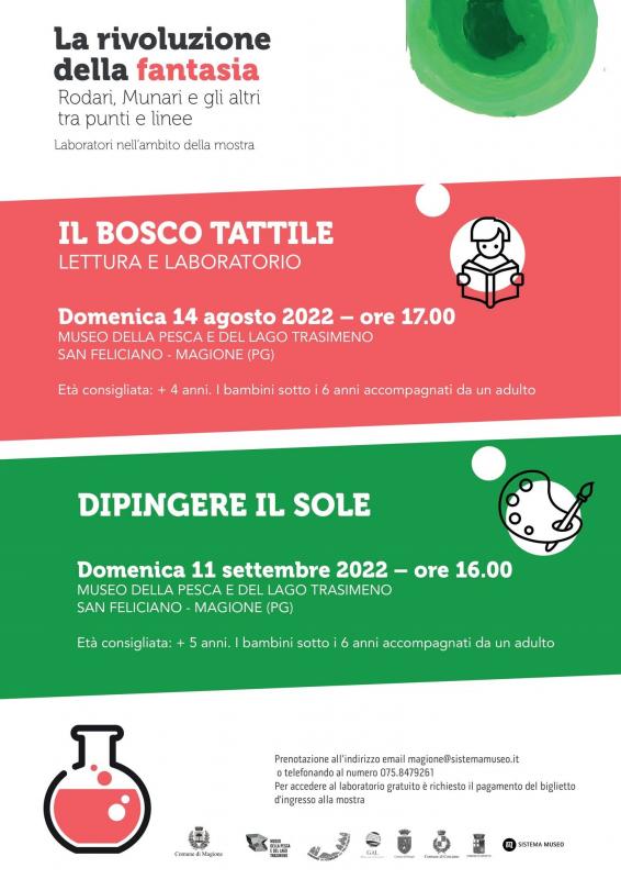 Ispirato dalla fantasia di due grandi creativi: Gianni Rodari e Bruno Munari domenica 14 agosto, ore 17, a San Feliciano di Magione, Museo della pesca e del lago Trasimeno, si terrà il laboratorio “Il bosco tattile".