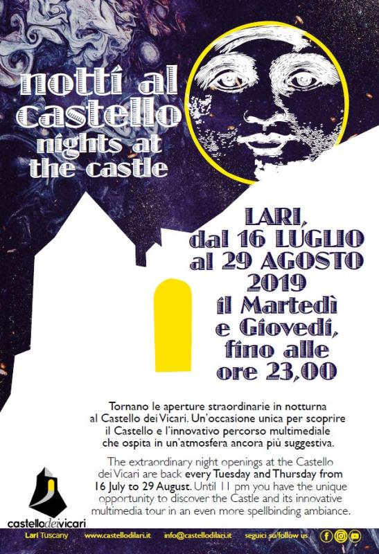 Torna anche quest'anno un appuntamento oramai fisso dell'estate: le aperture straordinarie in notturna del Castello dei vicari. Per ben 16 sere sarà possibile visitare la rocca in un'atmosfera ancora più magica e accattivante.