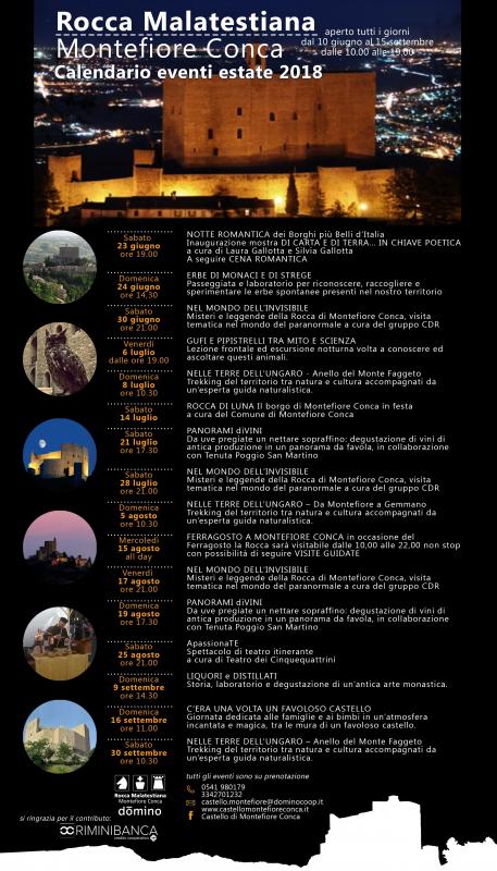 Calendario degli eventi ed iniziative che si terranno durante l'estate, ricordando altresì che fino al 15 settembre la Rocca Malatestiana sarà aperta al pubblico TUTTI I GIORNI dalle 10 alle 19.