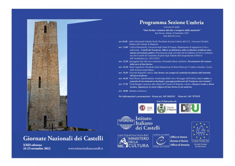 La giornata è organizzata dall'Istituto Italiano dei Castelli con i patrocini di: Ministero della cultura, GEP - Giornate Europee del Patrimonio, Comune di Magione, Università degli studi di Perugia, Deputazione di storia patria per l'Umbria, e in collaborazione con la Proloco di San Savino.