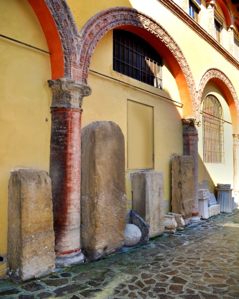 Gli archeologi illustreranno ai visitatori alcuni scavi recenti effettuati in area urbana -a cominciare da quelli sull'antico tracciato della Via Emilia realizzati in Via Ugo Bassi e Rizzoli in occasione del cantiere BoBo- e guideranno il pubblico in un percorso tra i manufatti conservati nel Cortile d'Onore di palazzo Ancarano, arricchito quest'anno da nuovi reperti restaurati dagli allievi dell'Accademia di Belle Arti di Bologna. Particolare attenzione sarà riservata alle stele tra cui spiccano quella di Titus Eborellius (con quella che oggi chiameremmo una famiglia allargata, concubina più tre liberti), di Caius Fricinius Primicenus e della moglie Aelania Parthenope, e di un’intera famiglia di sei persone sepolta lungo la via Emilia, in località Bitone. Lapidari spaccati di vita vissuta che nel tramandare nomi, parentele e status sociale dei cittadini della Bologna romana, fanno luce sulla storia di Bononia e dei suoi abitanti dalla tarda età repubblicana alla prima età imperiale (fine I secolo a.C. - I secolo d.C.).