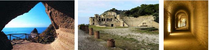 Il percorso di visita partirà dalla Grotta di Seiano, che si apre al termine della Discesa Coroglio. L’imponente grotta, in realtà una galleria artificiale realizzata in epoca romana dall’architetto Lucio Cocceio, obliata dal tempo e dall’accumulo di materiali, fu scoperta per caso nel 1840 e riattivata per interessamento di Ferdinando II di Borbone. Il traforo, della lunghezza di circa 780 m, attraversa la collina tufacea di Posillipo, collegando l’area di Bagnoli e dei Campi Flegrei con il Vallone della Gaiola. Dei tre cunicoli, che davano luce e ventilazione al percorso, ne restano aperti solo due (in uno di questi sir Arthur Conan Doyle, il creatore di Sherlock Holmes, rimase incastrato durante una visita). Superata la grotta, si accede all’area della villa di Pollione (alla quale, prima del traforo, si arrivava soltanto via mare), comprendente i resti di un teatro maggiore, la cui gradinata è costruita sfruttando il pendio della collina, secondo un collaudato schema costruttivo tipico dei teatri greci.