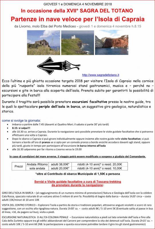 da Livorno, molo Elba del Porto Mediceo - giovedì 01 e domenica 04 Novembre h. 08.15