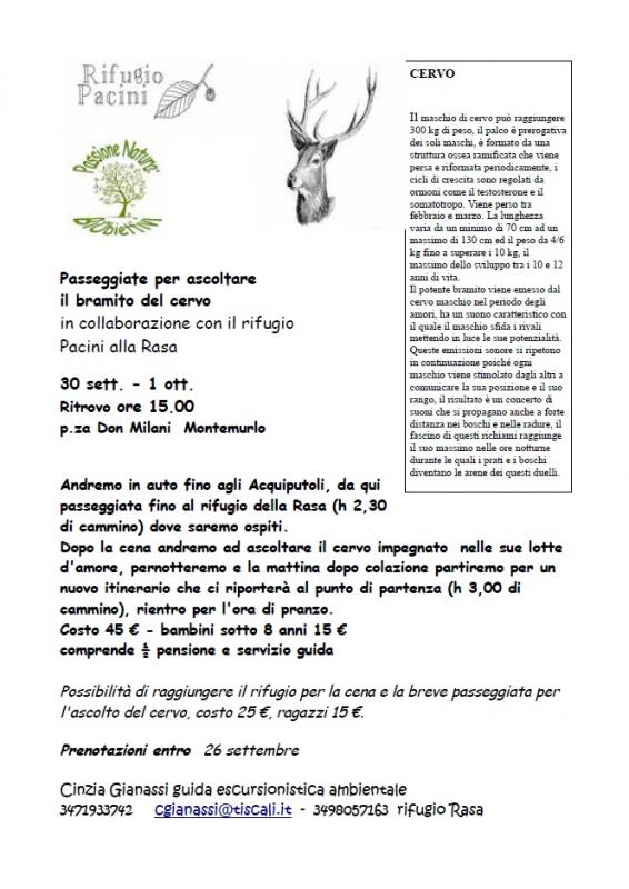 Passeggiate per Ascoltare il bramito del cervo
