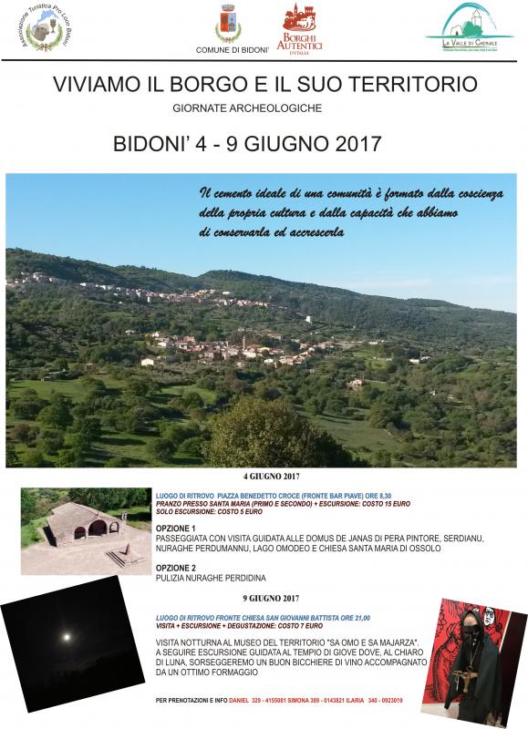La Pro Loco Bidonì, in collaborazione con il Comune, è lieta di invitarvi alle due giornate Archeologiche che si svolgeranno nel piccolo Borgo del Barigadu, nelle giornate del 4 e in notturna del 9 Giugno.