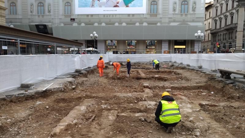 In occasione dei lavori per la ripavimentazione di Piazza della Repubblica è riaffiorato, sotto il lastricato ottocentesco, il tessuto dell’antica Firenze