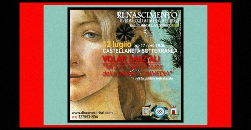 Un appuntamento da non perdere! Domenica 12 Luglio, con inizio alle ore 17 (primo turno) e alle 19.30 (secondo turno), nella Castellaneta sotterranea, la Discoverart srls e l’Associazione Culturale “Amici delle Gravine di Castellaneta” con il patrocinio del Comune, organizzano un evento di elevata caratura culturale: “VOLAR SANZ’ALI”, una visita guidata teatralizzata ispirata alla “Divina Commedia” di Dante Alighieri. I partecipanti all’iniziativa saranno accompagnati in un viaggio che si snoda tra i vicoli, gli ipogei, le corti medievali e gli affascinanti affacci alle gravine della parte più antica e bella di Castellaneta.