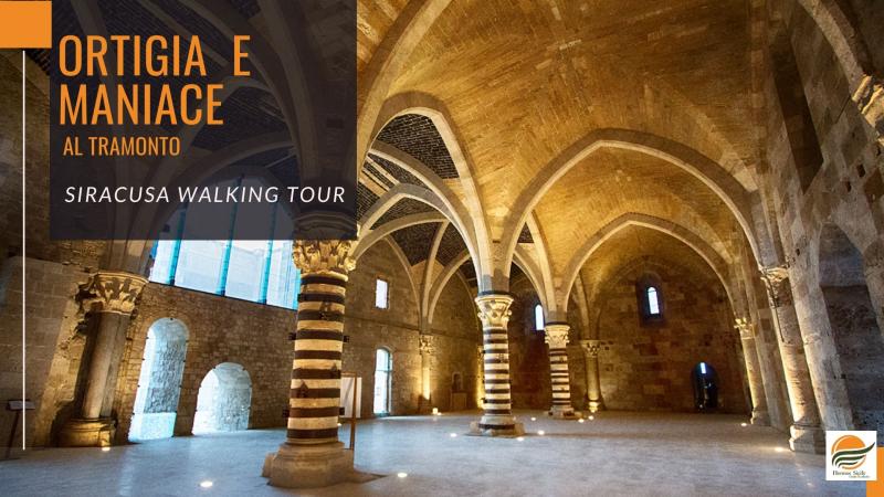 Ortigia e Maniace è una visita guidata che vi permetterà di scoprire la storia e i monumenti del centro storico di Siracusa e visitare il suggestivo Castello Maniace, impreziosito in questi mesi anche dalla suggestiva mostra "Passi".