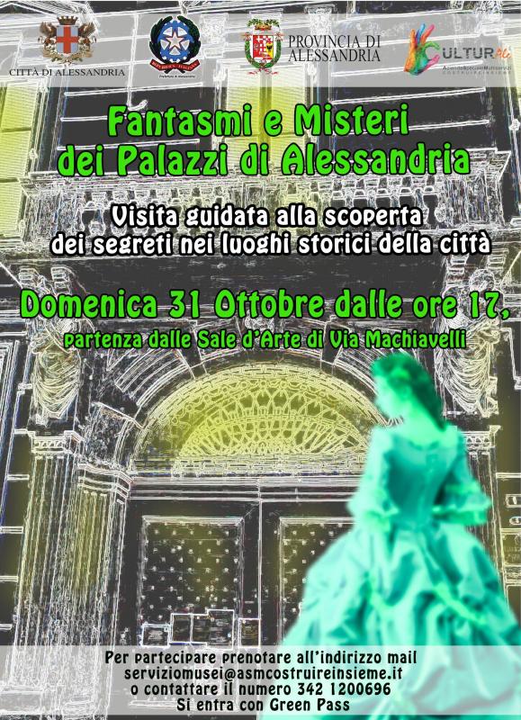 Domenica 31 Ottobre dalle ore 17,00 con partenza dalle Sale d’Arte di Via Macchiavelli 13 si terrà “Fantasmi e Misteri dei Palazzi di Alessandria” il giorno considerato dall’immaginario comune quello in cui il confine tra “terra e cielo” diviene più sottile e la percezione delle cose intorno a noi si acuisce.