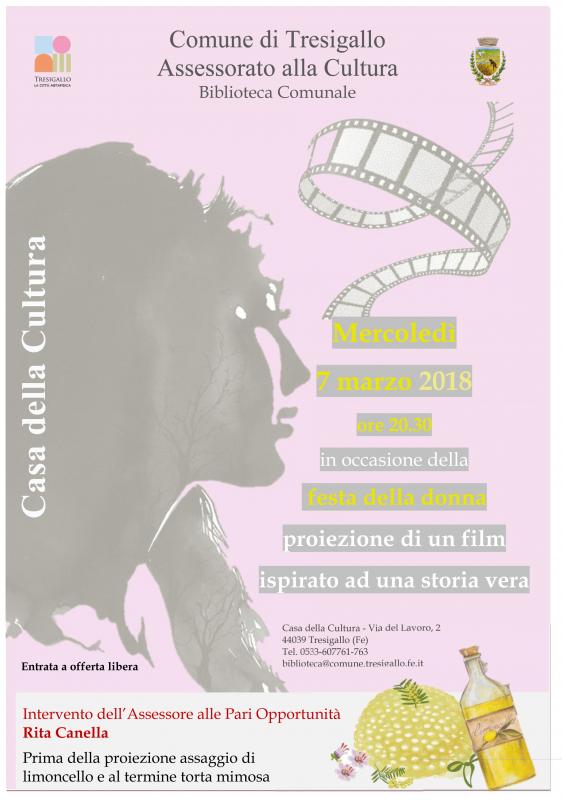 Mercoledì 7 marzo, in occasione della Festa della Donna, proiezione di un film ispirato ad una storia vera dedicato a tutte le donne.