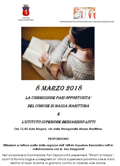 Nell'occasione la Commissione Pari Opportunità presenterà "Ritratti di Massa", scatti di Romina Zaga e consegnerà all'lstituto Superiore la panchina che è stata dipinta di rosso durante la giornata contro la violenza sulle donne.